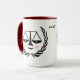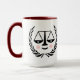 Uma caneca de advogado criativo com escala de cartoon de justiça. Para personalizar editar texto para adicionar nome.