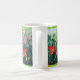Uma caneca clássica com os hemerocallis alaranjados vermelhos bonitos, as flores do fúcsia e os vagens vining da semente de papoila baseados em uma pintura a óleo por Joana C. Thomson de um jardim no Shenandoah Valley de Virgínia
