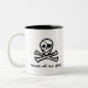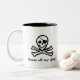 Uma bandeira de pirata clássica Roger alegre em cada lado com o aviso, "mãos fora de meu Grog!