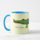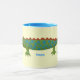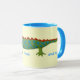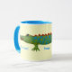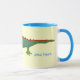 Branco e azul claro 11 oz. caneca combinada personalizável com uma imagem de um jacaré verde com escalas de bolinhas azuis intercaladas com escalas de bolinhas vermelha em amarelo suave. Consulte pote de doces e placa de papel correspondentes. Veja toda a coleção Kidz Korner Mug sob a categoria HOME na seção KIDZ KORNER.