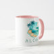 Gráfico tropical oceânico com "Aloha" em fontes modernas