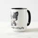 Desenho bonito de um cão branco preto (collie de fronteira, rouco da Sibéria, estilo Malamute do Alasca) com uma xícara de café - amante do café, amante do cachorro, - ideia de presente do excelente
