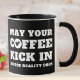 Para o amante do café. O moderno design tipográfico preto e branco lê 'Que seu café chute antes da realidade.' Qualquer presente para o amante do café. Enquanto o design está preto e branco, o Zazzle lhe dá a opção de mudar o dentro e manipular a cor.