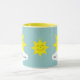 Caneca amarela da campainha dos sóis felizes de