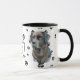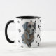 Esta caneca para o dono negro do Cachorro do Retriever Labrador apresenta o retrato de aquarela de um laboratório preto. A imagem é impressa duas vezes, e entre elas está um oval com o texto preto que diz "Ame meu laboratório negro". As imagens ovais e de cães são colocadas sobre um fundo aspergido com estampas pretas. Você pode facilmente mudar o texto para outra coisa, ou personalizá-lo, se quiser.