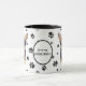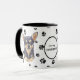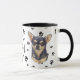 Esta caneca para o dono de Chihuahua mostra o retrato aquoso de um artista de um adorável negro e bronzeado Chihuahua. A imagem é impressa duas vezes, e entre elas está um oval com o texto preto que diz "Love my CHIHUAHUA". As imagens ovais e de cães são colocadas sobre um fundo aspergido com estampas pretas. Você pode facilmente mudar o texto para outra coisa, ou personalizá-lo, se quiser.