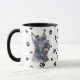 Esta caneca do escocês Terrier Dog apresenta o retrato de aquarela de um artista de um Scottie. A imagem é impressa duas vezes, e entre elas está um oval com o texto preto que diz "Love my Scottie". As imagens ovais e de cães são colocadas sobre um fundo aspergido com estampas pretas. Você pode facilmente mudar o texto para outra coisa, ou personalizá-lo, se quiser.
