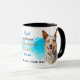 Um retrato de aquarela de um lindo Cão Gado Australiano é a característica em dois lados desta caneca. Cada imagem é colocada sobre um fundo azul brilhante de tela plana. Entre as duas imagens está o texto que descreve esse companheiro leal e corajoso, com "o CACHORRO AUSTRALIANO" em preto no fundo. Todo o texto é facilmente personalizado para qualquer coisa que você preferir para que você possa personalizá-lo ou descrever seu próprio cachorro.