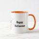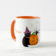 Seus filhos sorrirão quando virem esta adorável caneca de Halloween. esta caneca apresenta um design fofo com um gato preto, Jack O'lantern, teia de aranha e tudo o que é Halloween para deliciar seus filhos. Personalize esta caneca com o nome do seu filho.