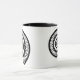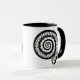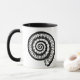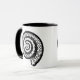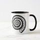 Mug de café numa seção transversal de um amonite - um molusco marinho extinto relacionado ao náutilo moderno. A concha forma uma bela espiral arcaica.