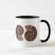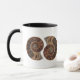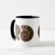 Fotografia de fósseis de amonite em cores de fundo personalizáveis. Imagem em ambos os lados da caneca.