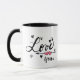 Te Amo | Foto Texto manuscrito Coffee Mug Esta simples e elegante caneca preta e branca diz "Ame-te" em texto preto moderno manuscrito com um coração correspondente e um lugar para os teus nomes no outro lado. Personalize todas as opções disponíveis conforme desejar.