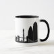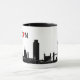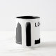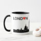 Nós amamos Londres, e para mostrá-la, nós apreciamos nosso café desta caneca de café à moda do desenhista resplendent com construções silhoetted da skyline de Londres e da Londres conhecida com um coração que substitui o segundo "O".