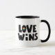 Este design apresenta a frase Amor vence com um coração colorido de arco-íris.