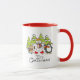 Uma caneca design de Natal bonita e colorida, com um urso polar, pinguim e rato, todos com lenços e skates de gelo com árvores cobertas de neve e texto que diz É Natal!