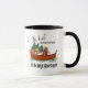Os animais engraçados em uma canoa, na caneca de café dos jogadores do banjo com imagens do design da ilustração da arte gráfica animais de uns animais selvagens do castor e do esquilo vestiram-se em jaquetas e em capacetes de vida, e em transportar de rio da água branca em uma canoa. As expressões da palavra do texto leram "oh, caro! "Sustente sua pá, ele é os jogadores do banjo outra vez!"