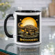 Caneca personalizada com o design do dinossauro Anquilossauro, apresentando o famoso dinossauro blindado em pé sob uma lua pré-histórica brilhante. Conhecido por sua poderosa armadura corporal e cauda distintiva em forma de clava, o Anquilossauro é um dos dinossauros mais fascinantes do período Cretáceo Superior. Há a frase "Totalmente Cafeinado" abaixo da imagem de um lado da caneca e um nome sob a imagem do outro lado da caneca. Ambos podem ser alterados ou removidos.