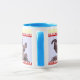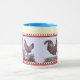 Caneca original que caracteriza uma imagem antiga de uma galinha e de um galo. O texto pode ser adicionado à banda amarela na parte superior se desejado.