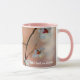 Coloridas flores de damasco japonês contra o fundo rosa de sakura no florescimento de cheios. A beleza do primavera, Hanami, a estação de observação de sakura. Texto de modelo impresso de dois lados personalizável. Você pode alterar ou excluir o texto. Você também pode transferir este design para uma variedade de produtos de tetefware. Basta escolher o da linha rolável "Transferir design para um produto". Para alterar a cor da fonte, a posição ou o tipo da fonte, use o botão "Editar Design" ou o link "Clique para personalizar mais" na opção "Personalizar este modelo". A ferramenta "Editar Design" oferece a opção "Ajustado/Preenchimento" para espalhar a imagem por toda a área imprimível de um produto. Uma caneca de café elegante para você ou um presente para seus amigos ou amados.