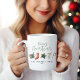 Uma design de caneca festiva divertida com aquarela favoritos de inverno - chocolate quente, cana doce, estocagem. Feliz Natal em letra contemporânea, perfeito para celebrar o feriado. pode ser editado, parte de uma coleção.