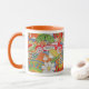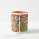 Branco e laranja 11 oz. caneca de ressono com uma imagem vintage dos anos 70, em ambos os lados, de uma cena do "oh-so-70". Ver pote de doces correspondente, copo de café expresso, frasco, caneca viagem/viagem ao trabalho, lançador, vidro de tiro, bule de chá e portas copos. Veja toda a coleção Disco 70s Mug na COMIDA/BEV| Seção Pratos.