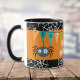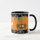 Esta caneca de Halloween apresenta uma aranha feliz suspensa de sua teia contra um fundo laranja brilhante. A imagem está em dois lados da caneca, com seu texto personalizado entre eles. Você pode personalizar a caneca, ou mudá-la para qualquer coisa que quiser. Uma faixa colorida que diz "Trick or Tratat" é transportada por dois morcegos pretos. Uma borda de aranha negra e branca adiciona um interesse assustador. Bonito para qualquer idade durante a época das Halloween, mas especialmente para as crianças! *O Clip art usado neste design é protegido por direitos autorais pela Encore Software, Inc., que permite o uso a seus licenciadores. Todos os direitos reservados.