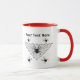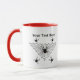 Esta caneca de café ou chá tem teias pretas de aranha em forma de triângulo com aranhas envenenadas de viúvas pretas com marcas de ampulheta vermelha nas teias. Personalize seu texto com o modelo.