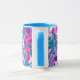 Uma caneca de café de arte azul e roxa.