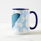 Trabalho de arte digital original que consiste em um padrão de folha de safra, recriado em pop com tons azuis levemente angustiados. Uma silhueta de borboleta de estilo artístico é colocada na frente da caneca. O dentro da caneca e da alça é azul marinho. Estas são canecas de 15 onças, do tamanho perfeito para o café ou chá da sua casa - ou até chocolate quente! Ele faria um presente de excelente e você poderia colocar pacotes de café, bolsas de chá ou dentro de chocolate quente. Uma outra ideia de presente é colocar uma pequena planta nela para torná-la mais especial para o seu amado.