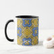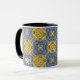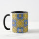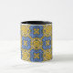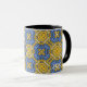 Aproveite seu café matinal em um caleidoscópio, uma caneca de presente para você e seus entes queridos. Reflexão. Harmonia e equilíbrio em amarelo com um toque de azul.