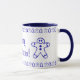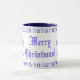 Árvore de Natal Moderno Azul e Branco e Padrão de Homem de Gingerpão com texto personalizado Feliz Natal em Script Elegante, você pode mudar ou excluir o texto, Mug de Café Feriado de inverno para crianças de todas as idades