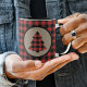 O fundo desta caneca festiva de Holiday é um padrão de xadrez de búfalo vermelho e preto. No centro de cada lado há um banner de círculo brando com uma imagem correspondente de árvore de Natal vermelha e xadrez preta. Certifique-se de ver os produtos correspondentes em nossa loja.