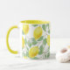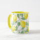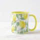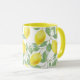Um limão frutífero. Padrão da árvore de limão. Limão com folhas verdes, limões amarelos e flores brancas.