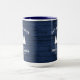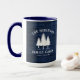 Uma na moda bonita, rústica, grande caneca de café, com seu nome e "Cabina da família", Ranch, Cottage ou outro texto, juntamente com sua data e localização estabelecidas, se desejar. Este design personalizado, único, apresenta texto no estilo do país rústico com uma silhueta branca de pinheiros em um impressão de tábuas de madeira em cores azuis ricas. Para ver mais designs como esta, sinta-se à vontade para visitar a minha loja aqui em "Zazzle.com/Rustic_Charm". Obrigados.