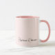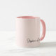 Caneca Personalizada Feminina Minimalista Elegante Rosa Bege com Nome Monograma Assinatura em Letra de Mão. Este design apresenta nome personalizado em uma fonte de assinatura tipografia em letra de mão cursiva bonita (ou caligrafia) em fundo rosa poeira pastel ou rosa bege claro. São fáceis de personalizar. Ótimo presente feminino elegante para inauguração, também para aniversário, dia das mães, festa de 16 anos, casamento, chá de noiva, chá de bebê, para festa de formatura e é para a garota que ama coisas únicas e elegantes.