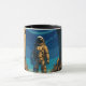 An astronaut standing between towering ancient pillars under a radiant moon suspended in a cosmic sky. The scene blends the mystery of forgotten civilizations with the boundless wonder of space exploration. The lone figure symbolizes humanity’s search for meaning across time and galaxies, standing at the threshold between the ruins of the past and the endless possibilities of the universe.