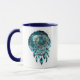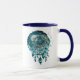Estilo boho chic espiritual, con paleta de azules profundos, turquesas y dorados suaves.