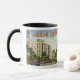 Arte postal de 1950 na rua Miami Beach, Flórida, na Avenida Collins, com hotéis de luxo, incluindo a Saxónia. As palavras Miami Beach em uma letra de deco de arte foram adicionadas à arte original de cartas.