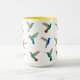 Caneca única para amantes de beija-flores apresentando várias espécies de beija-flores tropicais, tais como os beija-flores de garganta, apphire de cauda-Ouro e beija-flores de apphire, violetear, coronet e glittering Starfrontlet Hummingbird Imagens tiradas de pinturas de aquarela originais por Christiane Dobbins.