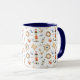 Esta é uma caneca-padrão náutica com âncoras, faróis, caranguejos, mapas e muitos outros itens náuticos bonitos. Realces azuis de marinho que podem ser removidos ou alterados para sua escolha de cor. Este design é perfeito para o seu tema náutico. Imagine isso no seu barco ou iate? Que lindo. Perfeito por servir sua bebida quente para seus convidados ou sua bebida matinal.