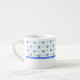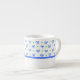 Uma caneca de café bonito do café a personalizar, com um teste padrão dos arcos e dos pontos em azul e em verde em um fundo branco de um design pintado à mão por Judy Adamson. Adicione o texto em torno do espaço branco na parte inferior se você deseja! Pote e jarro de coordenação do chá também disponíveis.