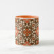 Mug em um padrão de azulejo de Art Deco marroquino baseado em flores e folhas estilizadas - chocolate marrom, ferrugem / terracota e bege mole, acentuado com bronzeado de camelo