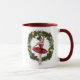 Celebre a magia da estação com esta caneca vermelha de bailarina, cercada por uma coroa de estrelas e ornamentos de férias. Um presente perfeito para amantes balés, dançarinos, ou qualquer um que goste de arte festiva elegante. Bonita, graciosa e cheio do espírito natalino.