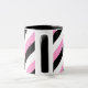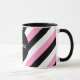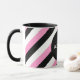 Xícara de café Black, White e Pink Stripes projetada com faixas diagonais de preto, branco e rosa. Faz um presente de excelente ou um gafanhoto. Por https://www.zazzle.com/store/celestesheffey