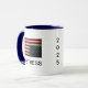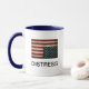 Coffee Mug com a bandeira americana invertida alertando "Distress" (texto preto) em ambos os lados com a alça oposta "2025" (texto traseiro). Faça a sua declaração sobre o estado atual do país. Outro clássico dos designs Ken-Ray.