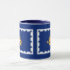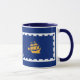 Mug com a bandeira da cidade de Quebec, capital do Quebec, Canadá. Uma bandeira azul com contorno branco e um navio amarelo no centro