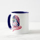 caneca de café American Flag em um design patriótico legal mostrando estados unidos bandeira da América design de caneca de café com estrelas e listras em branco vermelho e azul com uma cobertura de águia careca em azul-vermelho