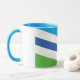 Mug com uma design com uma design com a bandeira de Dayton, Ohio. Uma bandeira verde, azul e branca