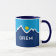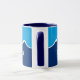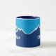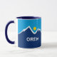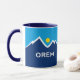 Mug com um design com a bandeira de Orem, Utah. Uma bandeira azul, branca e amarela com picos de montanha e o sol no centro