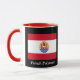 A bandeira de Polinésia francesa foi adotada em 1984. Duas bandas horizontais vermelhas encerram uma banda branca larga em um 1:2: 1 relação; é centrado na banda branca um disco com um teste padrão de onda azul e branco que descrevem o mar na metade inferior e um teste padrão do ouro e o branco do raio que descreve o sol na parte superior - metade; uma canoa polinésia monta no teste padrão de onda; a canoa tem um grupo de cinco representados por cinco estrelas que simbolizam os cinco grupos de ilha; o vermelho e o branco são cores polinésias tradicionais.